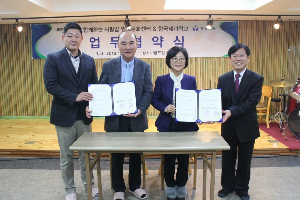 * 재단법인 과우학원 한국제과학교와 사단법인 합께하는 사랑밭 월드문화센터 업무협약 체결